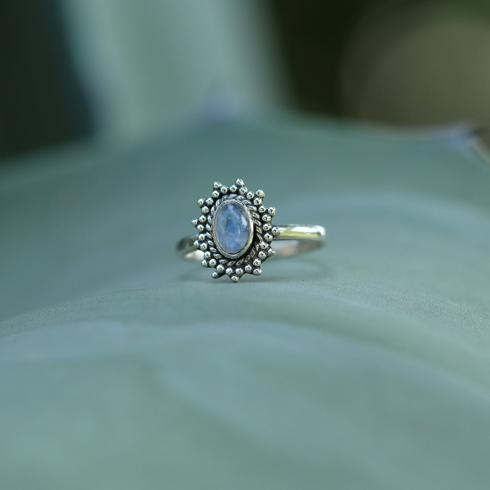 Blue Stone Thin Silver Ring