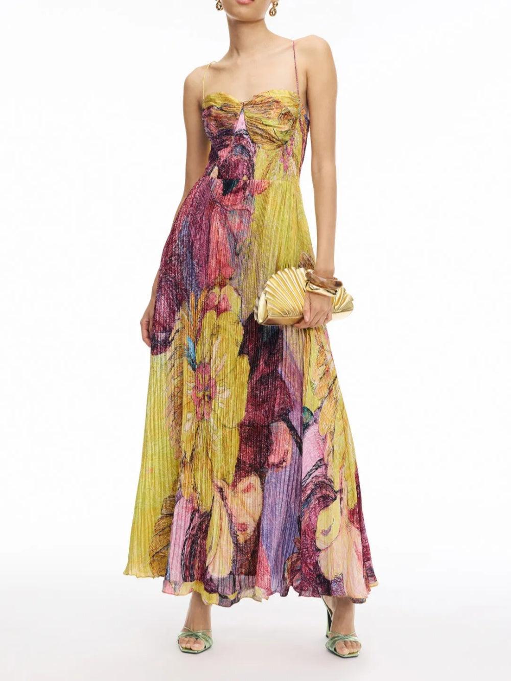 Painted Print Pleated Maxi Dress