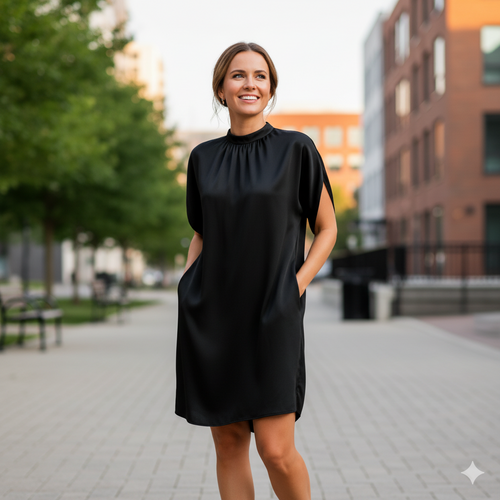 The sophisticated Trudy dress combines simplicity and elegance for a timeless look that suits any occasion. With its flattering design and subtle details, you will effortlessly exude class whether you're heading to work, planning an outing, or enjoying a special evening.